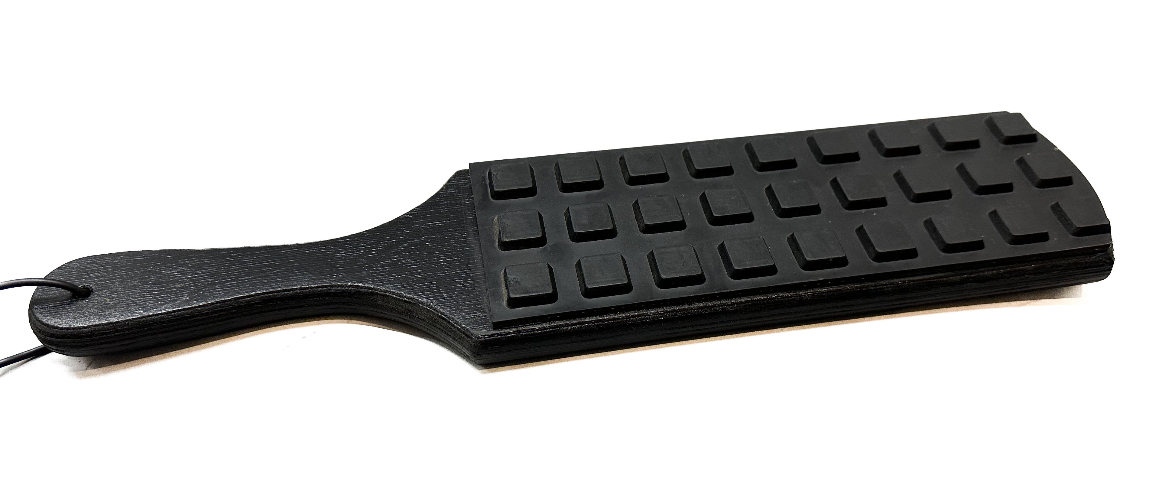 Paddle aus schwarz lackiertem, leicht angerautem Holz (Multiplex)