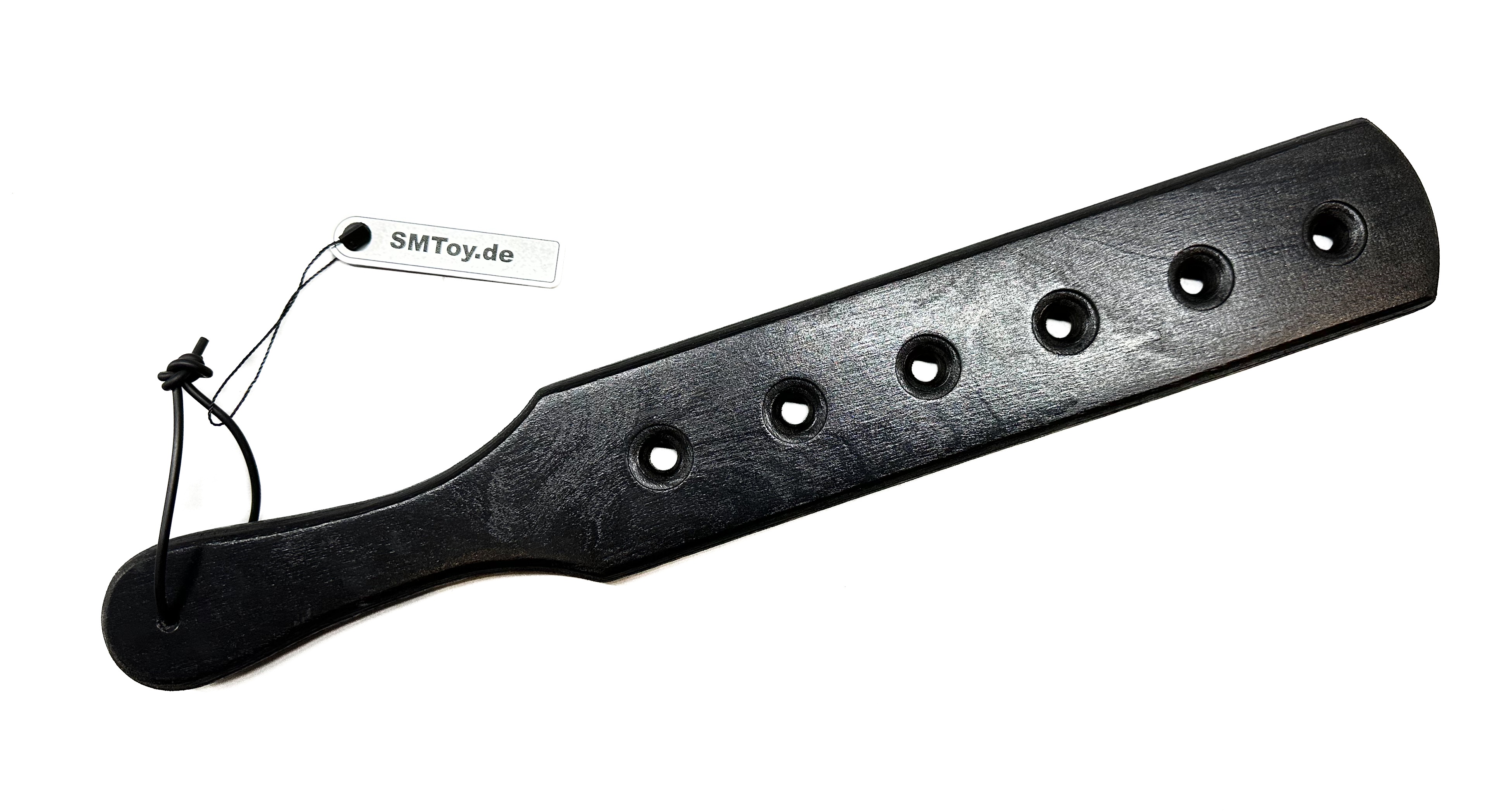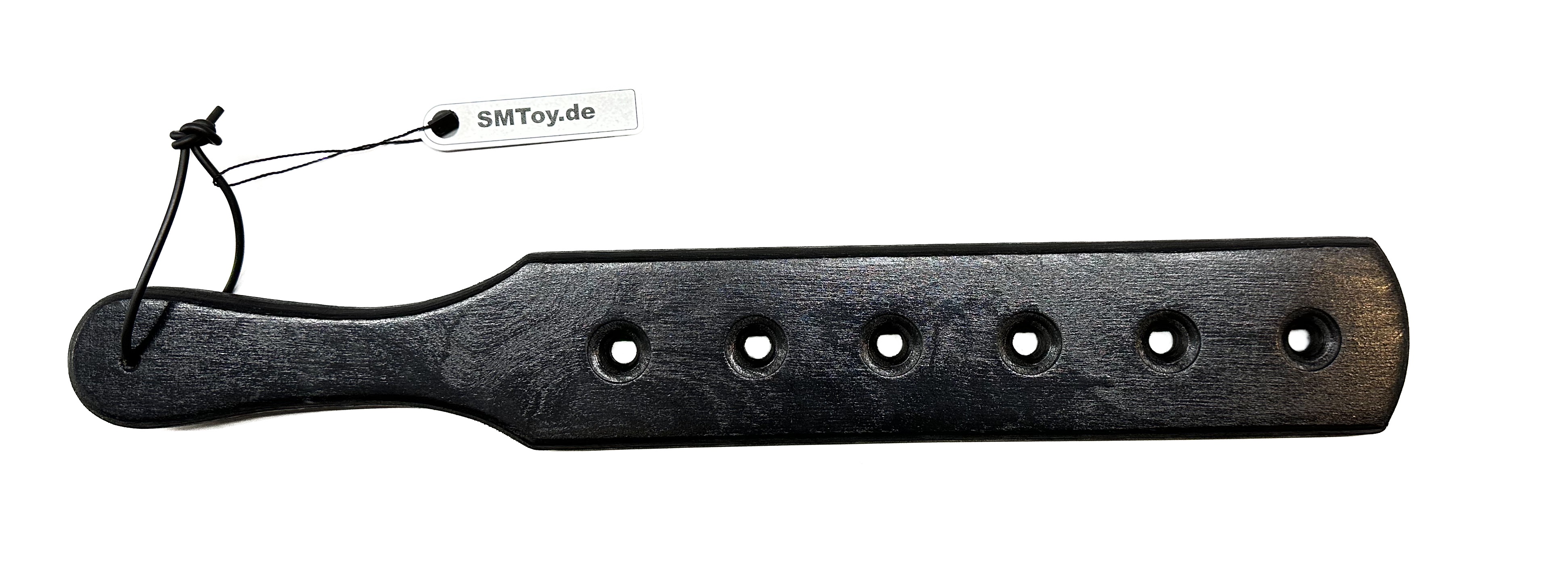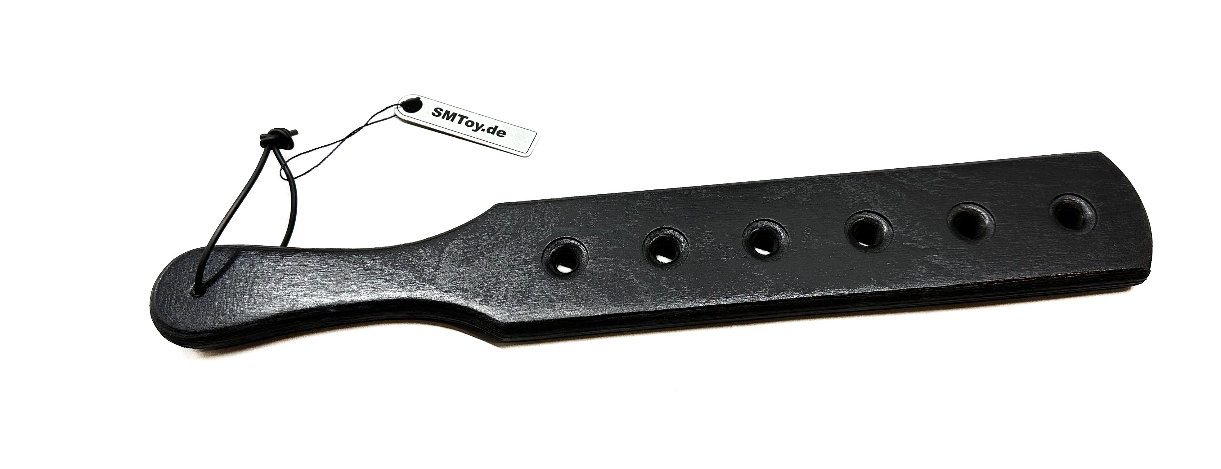 Paddle aus schwarz lackiertem, leicht angerautem Holz (Multiplex)