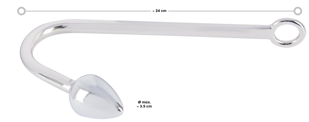 Der Haken ermöglicht es, ein Seil daran zu befestigen, welches wiederum an Händen, Hals oder Ähnlichem gebunden werden kann, sodass der Träger des Analplugs diesen bei jeder Bewegung tiefer eindringen lässt.