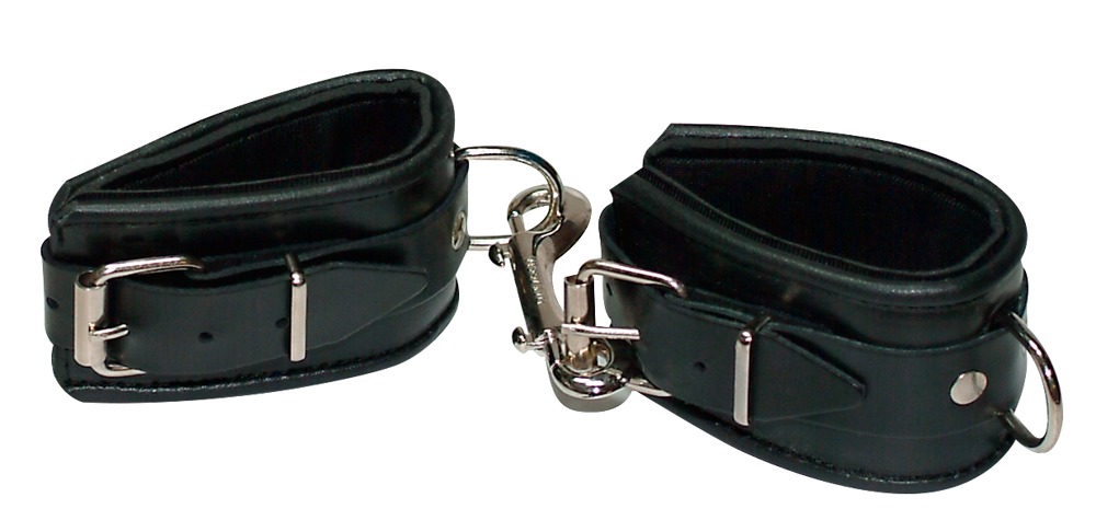 Der Fessel-Klassiker! 6,5 cm breite, weich gepolsterte Handgelenk-Manschetten mit einem Verbindungs-Karabinerhaken.