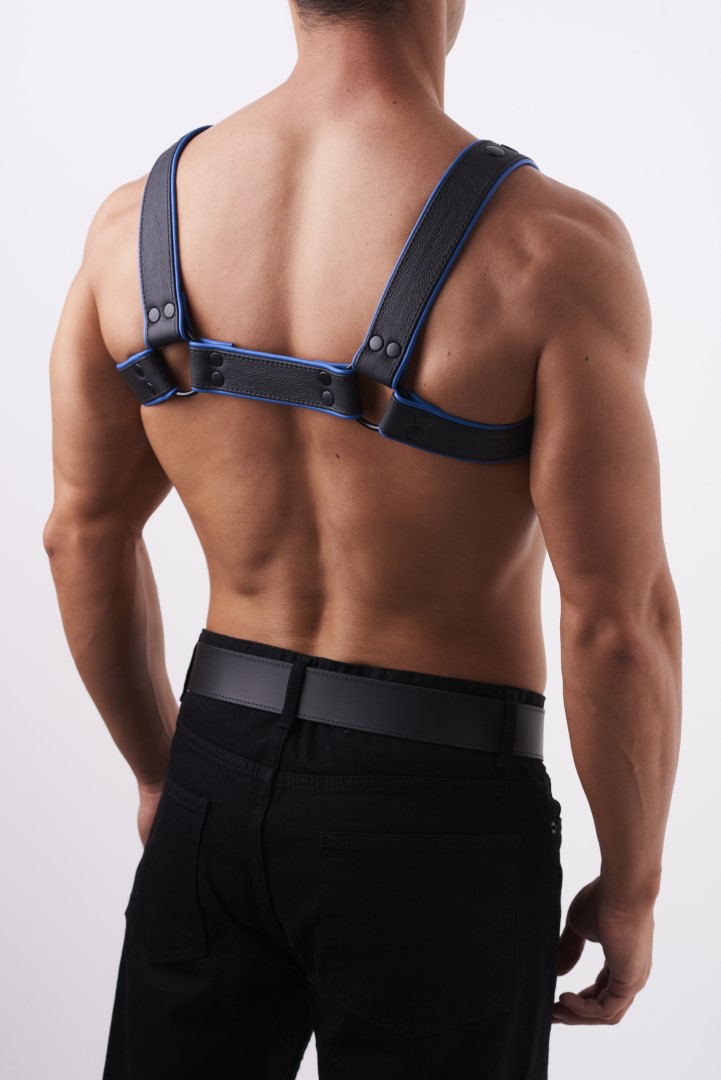 HighQuality - Soft Leder Brust Harness Schwarz/Blau