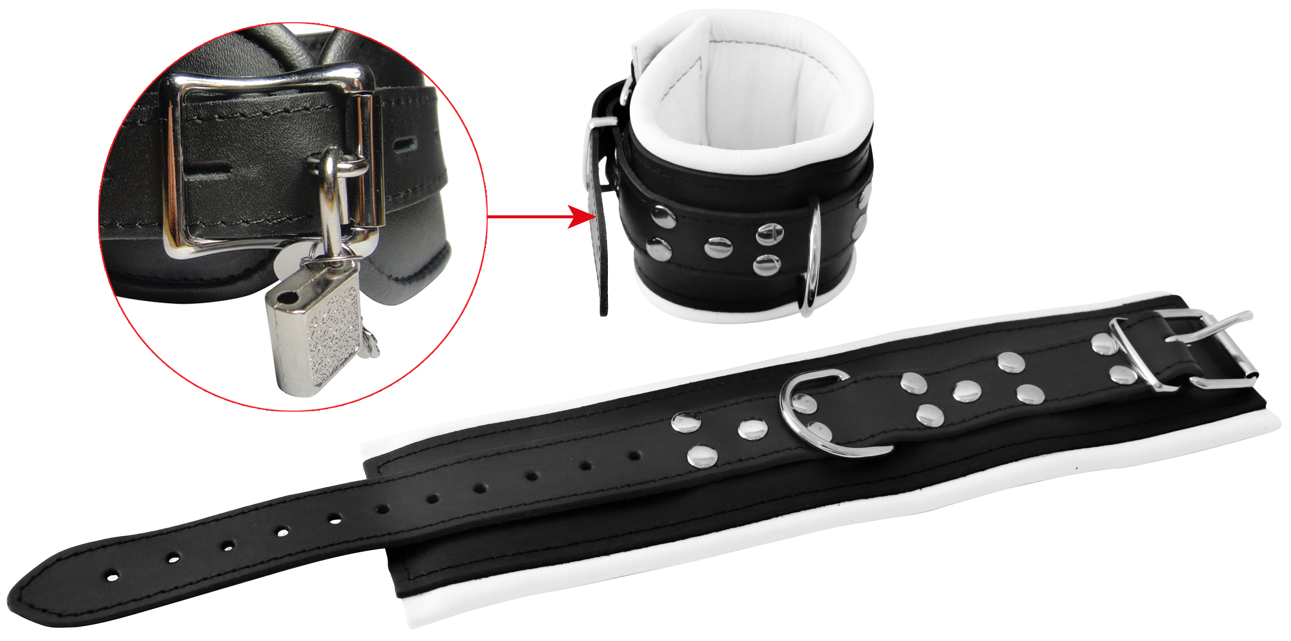 Innen mit weichem Leder gepolstert. D-Ring geschweißt.(inkl. 2 Schlösser)